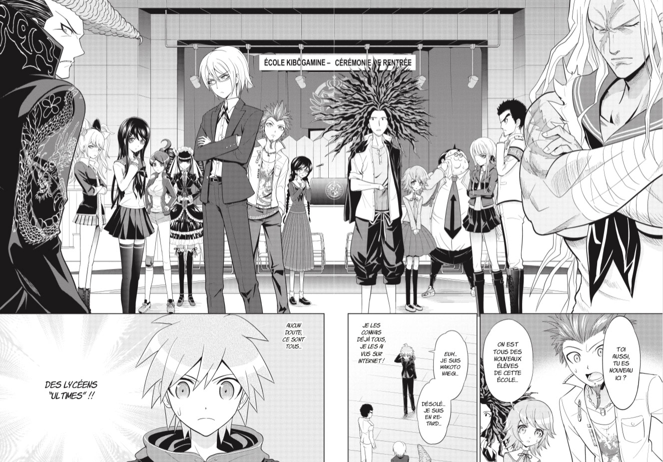 L’école privée Kibôgamine est un établissement réputé pour son processus de sélection extrêmement strict : seuls les lycéens qui excellent dans leur domaine peuvent y entrer. Lorsque Makoto est tiré au sort pour l’intégrer, il est donc aux anges… C’est pourtant sa descente aux enfers qui commence lorsqu’il se retrouve prisonnier d’un jeu de la mort avec ses camarades. Et il devra garder la tête froide face au diabolique proviseur Monokuma…