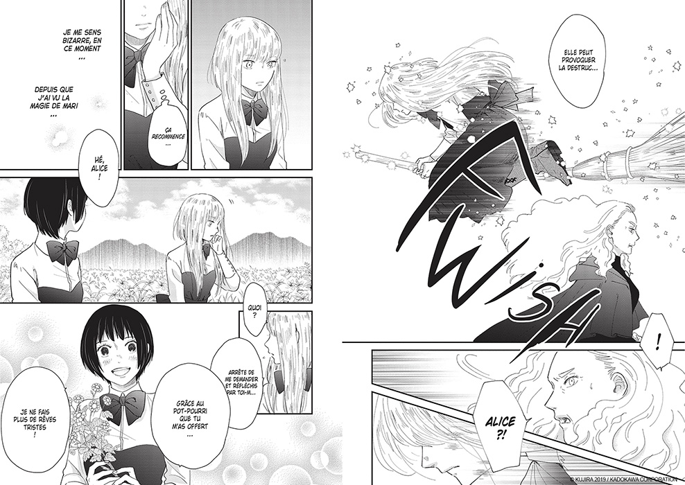 - Résumé officiel de LES SORCIÈRES DE LA FIN DU MONDE : Mari est une sorcière, mais jusqu’à récemment, elle ne le savait pas ! Dans sa nouvelle école pour magiciennes, elle provoque très vite la jalousie de ses camarades : comment est-il possible qu’une adolescente issue du monde des humains puisse intégrer cette prestigieuse académie ? Rejetée par les autres élèves, elle va pourtant se rapprocher d’Alice, sa tutrice. Cette dernière, en découvrant le pouvoir unique de la nouvelle venue, ne peut s’empêcher d’éprouver… de la curiosité ? À moins qu’il ne s’agisse d’autre chose… De jour en jour, Mari découvrira les raisons de sa présence au sein de l’académie, mais aussi les raisons qui poussent les sorcières à vouloir se venger des humains !