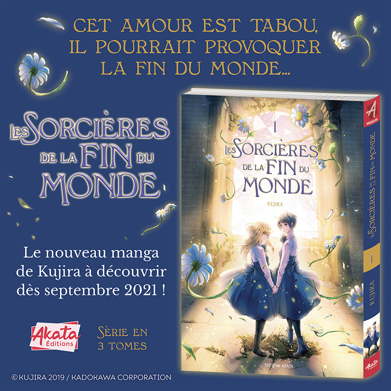 Ma sorcière bien aimée ! Les éditions Akata poursuivent leur collaboration avec Kujira. Après ENTRE DEUX et SWITCH ME ON, la mangaka revient cette fois-ci avec une oeuvre fantastique : LES SORCIÈRES DE LA FIN DU MONDE. Série terminée en trois tomes, LES SORCIÈRES DE LA FIN DU MONDE abordent la romance scolaire au sein d’une école de jeunes apprenties sorcières entre « amour, jalousie et mystères. » L’éditeur nous promet une « série charmante qui mélange les genres, pour le plus grand plaisir des lectrices et des lecteurs. » Rendez-vous en septembre pour dévorer le premier tome !