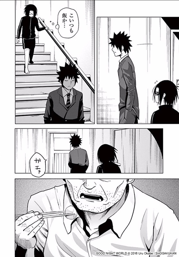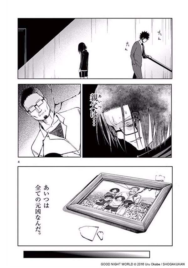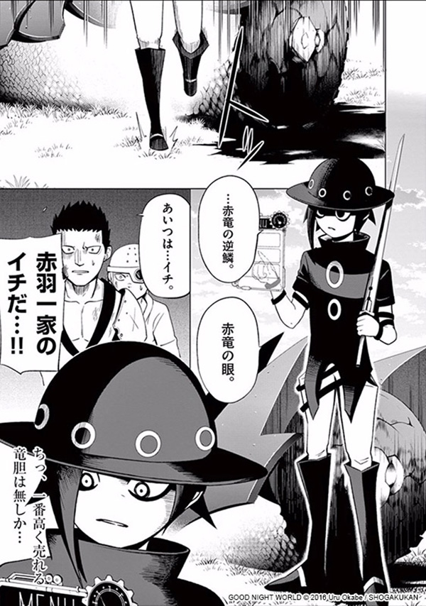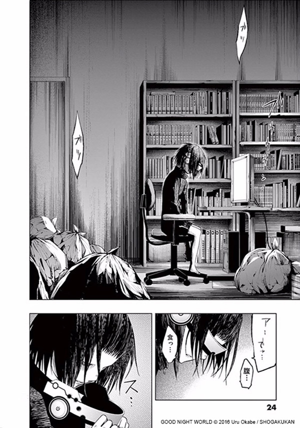- Résumé officiel de GOODNIGHT WORLD : Taichiro est en rupture sociale complète. Détestant sa famille du plus profond de son être, il s’est réfugié dans PLANET, le MMO en réalité virtuelle le plus en vogue du moment. Dans cette autre réalité, il est membre d’Akabane, l’une des plus prestigieuses guildes de ce jeu en ligne. Au sein de cet autre univers, il s’est créé une famille de substitution. Aux côtés de Shiro, Mei et AAAAA, il espère bien vaincre le légendaire Black Bird of Happiness. Mais l’équilibre précaire de sa vie bascule quand, un jour, son véritable père est hospitalisé… Rappelé brutalement à la réalité par sa famille qu’il exècre, ne risque-t-il pas d’aller de désillusion en déception en découvrant ceux qui se cachent derrière ses camarades de guilde ?