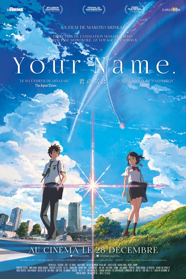 Il a déjà dépassé les scores de Jurassic Park et de Star Wars: la menace fantôme ! Le film sortira en France le 28 décembre 2016. Your Name vient de remporter le prix du meilleur film d’animation au 49ème festival international du film fantastique de Stiges en Espagne !