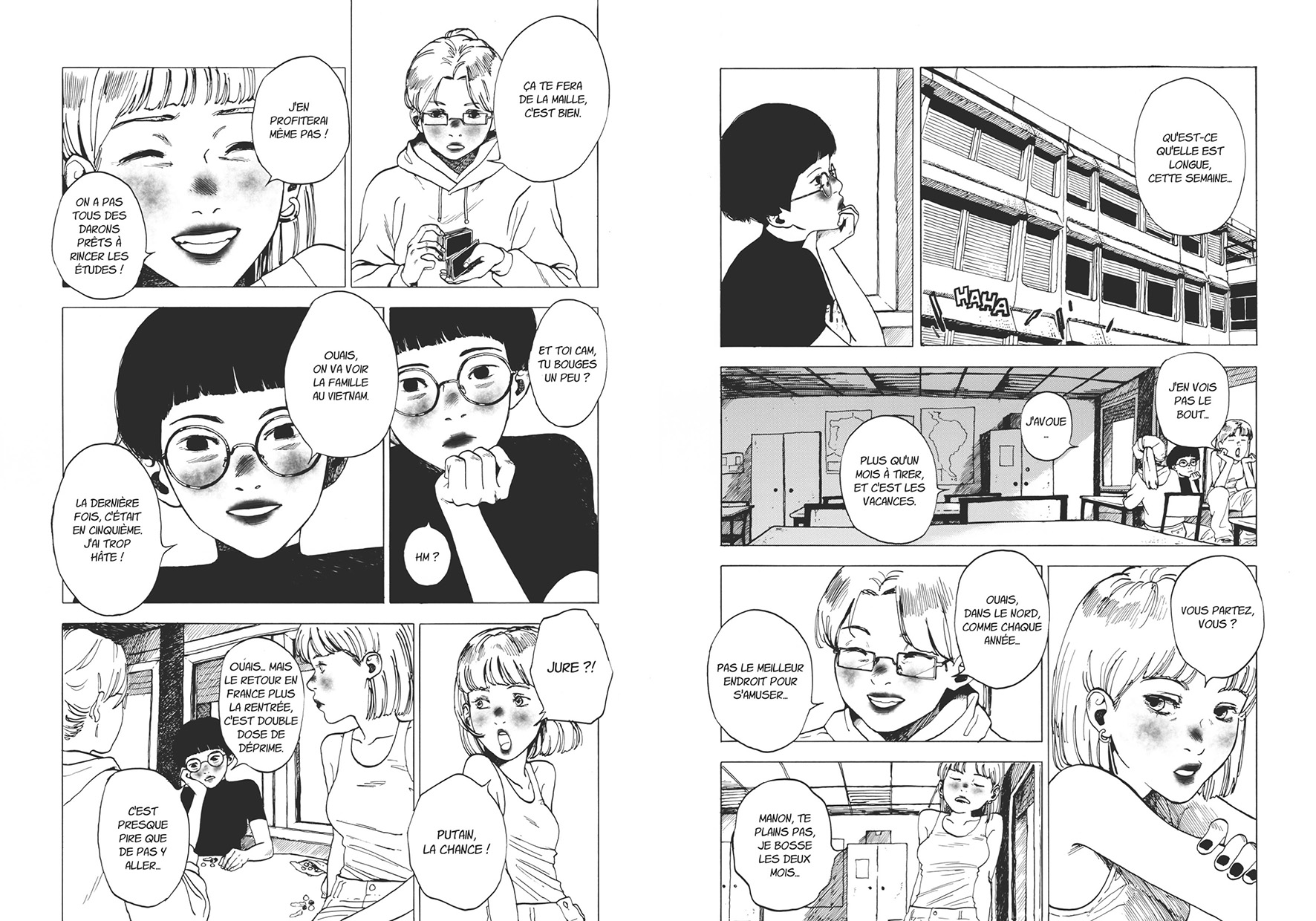 Matis Montes exploite ici une fibre à mi-chemin du manga et du roman graphique. « Roman graphique », c’est une catégorie un peu floue et un peu… bidon, qu’on utilise ici faute de mieux. Le terme devient populaire dans les années 1980, pour désigner des bandes-dessinées qui sortent du format habituel (par exemple, les 44 planches d’un album de Spirou ou de Lucky Luke). Repris par les médias généralistes, il désigne souvent des bandes-dessinées sur des sujets de société ou intimes, mais c’est aussi un moyen de la jouer intello et de ne pas dire « BD » (qui serait un truc pas terrible du point de vue artistique…).