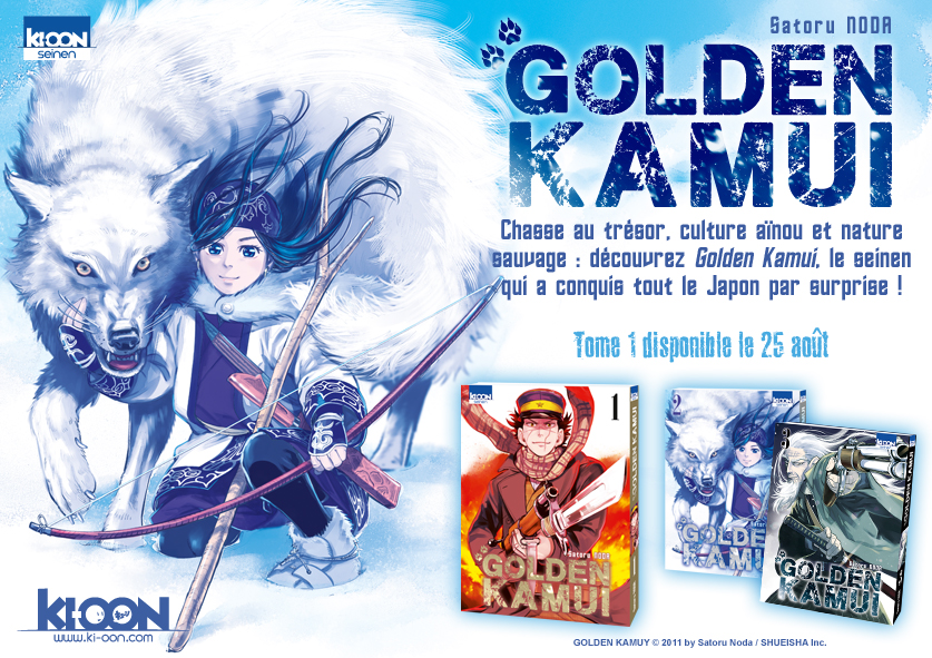 Les éditions Ki-oon annoncent la sortie le 25 août 2016 du manga tout juste auréolé du prix du meilleur manga au Japon : GOLDEN KAMUI de Satoru NODA.