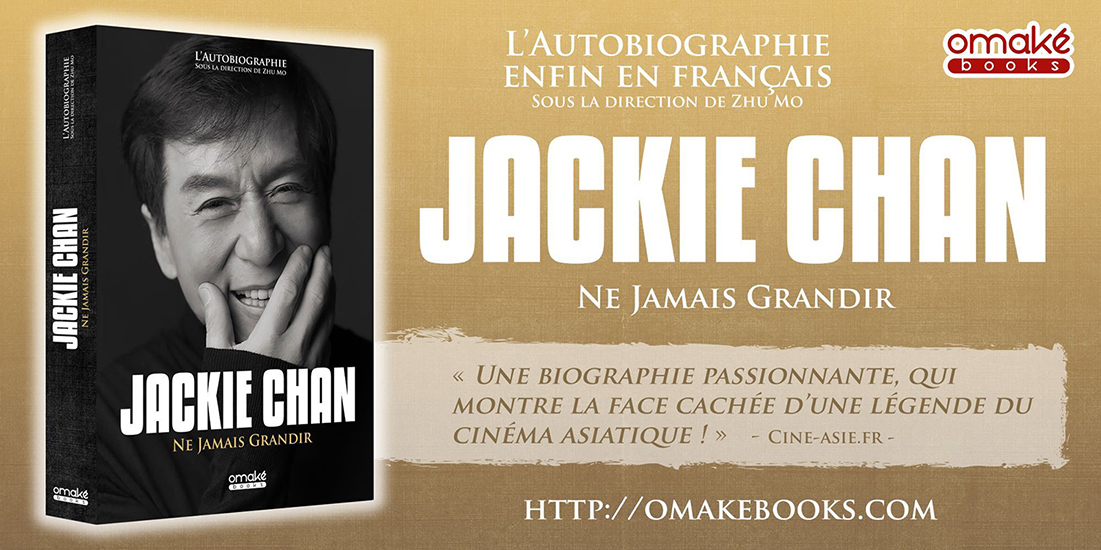 Jackie Chan comme vous ne l’avez jamais lu ! Les éditions Omaké Books viennent de publier JACKIE CHAN – NE JAMAIS GRANDIR (sous la direction de Zhu Mo) en deux versions : une standard et une collector limitée et numérotée à 1000 exemplaires. Redécouvrez Jackie Chan, légende du cinéma avec près de 200 films à son actif à travers 35 chapitres remplis de ses souvenirs, ses photos et ses passionnantes anecdotes de tournages. Vous avez de quoi lire ce week-end !