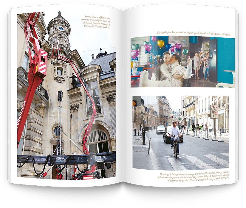 - SOUVENIRS PHOTOGRAPHIQUES : l’album photos-souvenirs (64 pages) en couleurs doté d’une couverture cartonnée et contenant plus de 160 photos commentées par Jackie Chan