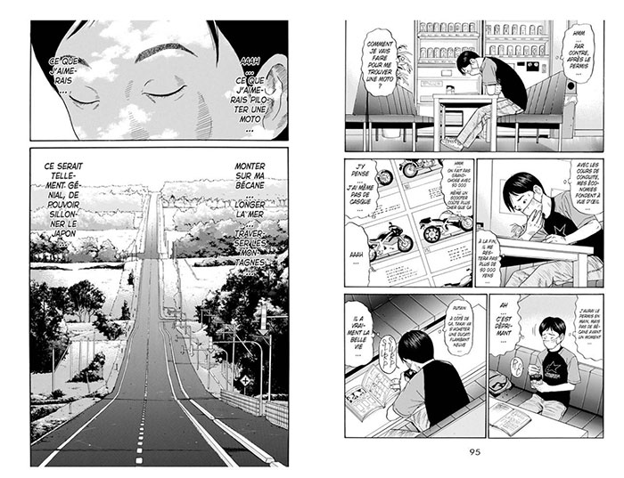 - Résumé officiel de POISON QUOTIDIEN : Yusuke Ogino est un lycéen complètement banal. Avec son meilleur pote, Takao Takai, il se fait sans cesse harceler, racketter. Et parce qu’il ne sait pas comment réagir, il lui est parfois plus simple de se laisser être la victime. Alors pour s’échapper, il rêve de liberté, de passer son permis moto et de rouler, de parcourir le Japon pour se sentir libre… Mais ce foutu quotidien, toujours, il revient, il vous étouffe, il vous empoisonne. Est-ce qu’un jour, enfin, le bonheur frappera à sa porte ?