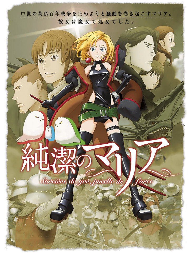 Antimilitariste médiévale, la Française Maria lutte contre la guerre de Cent Ans à l’aide de pouvoirs magiques fournis par des démons. Le Paradis se voit contraint d’agir par l’intermédiaire de l’archange Michael qui fera disparaître les dons de Maria avec son hymen, et par celui d’Ezekiel, chargé de surveiller la jeune fille. On est curieux de voir comment Gorô Taniguchi va approcher la France du XIVe siècle, un univers bien lointain de la SF qui a fait son succès (PLANETES, CODE GEASS), dans cette adaptation réalisée chez Production I.G ! Le manga original tenant sur trois petits tomes, JUNKETSU NO MARIA débutera en janvier et s’annonce comme une courte série potache, qui mêle heroic fantasy façon DRAGON QUEST à un humour que n’aurait pas renié Benny Hill.