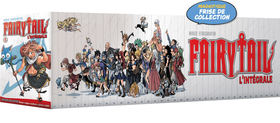 Avis aux magiciens collectionneurs ! A partir du 12 août prochain et tous les quinze jours vous pourrez vous procurer un nouveau numéro de l’intégrale grand format collector de FAIRY TAIL. Le manga culte de Hiro Mashima se dévoile sous un nouveau jour avec plus de 300 pages, des pages couleurs, des bonus et un poster offert à chaque volume. Intéressés ? Alors n’hésitez pas à vous abonner à la collection aux éditions Hachette ou à passer régulièrement chez votre marchand de journaux préféré !