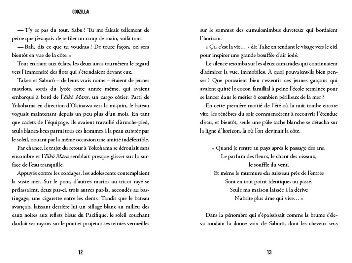 - Résumé officiel de GODZILLA : Alors que l’Eikô Maru s’apprête à rentrer à bon port, une lumière aveuglante apparaît sous l’eau et le bateau fait inexplicablement naufrage. Dès lors, toute tentative de secours est vouée à l’échec. Sur la petite île d’Ôto, les habitants cherchent la cause de l’événement désespérément, tandis que des bruits de pas assourdissants se font entendre au loin… Une menace ancienne et titanesque fait alors surface, délogée par les essais nucléaires ayant cours en pleine mer : une créature mythique que les locaux ont surnommée « Godzilla ». Une course contre la montre s’engage pour sauver Tokyo…