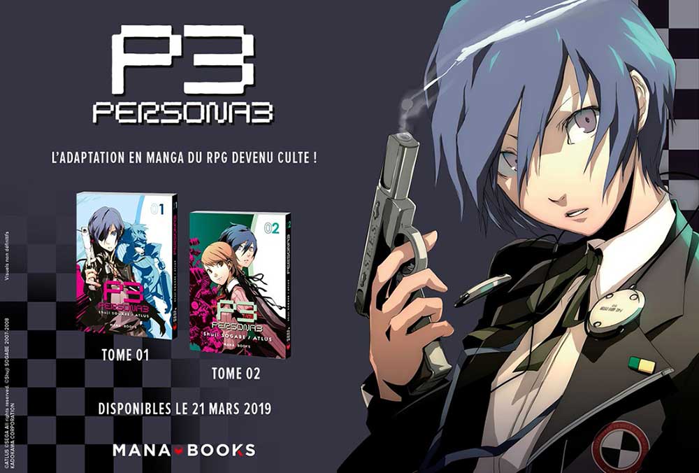 La série PERSONA 3 est également disponible aux éditions Mana Books. Sortie simultanée des deux premiers tomes le 21 mars 2019.