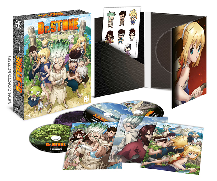 Vous faites quoi cet été ? Si les cahiers de vacances vous font faire la grimace, pourquoi ne pas faire un stage scientifique grâce aux coffrets DVD et Blu-ray de la saison 1 de Dr. STONE ? Disponibles dès le 6 juillet prochain chez Kazé, vous pourrez voir et revoir le début des aventures de Senku et des autres survivants dans un monde redevenu sauvage après que toute l’humanité se soit changée en pierre. Et petit bonus pour les grands fans, Kazé nous glisse à l’oreille qu’une édition collector devrait arriver en fin d’année. Une info à noter précieusement !
