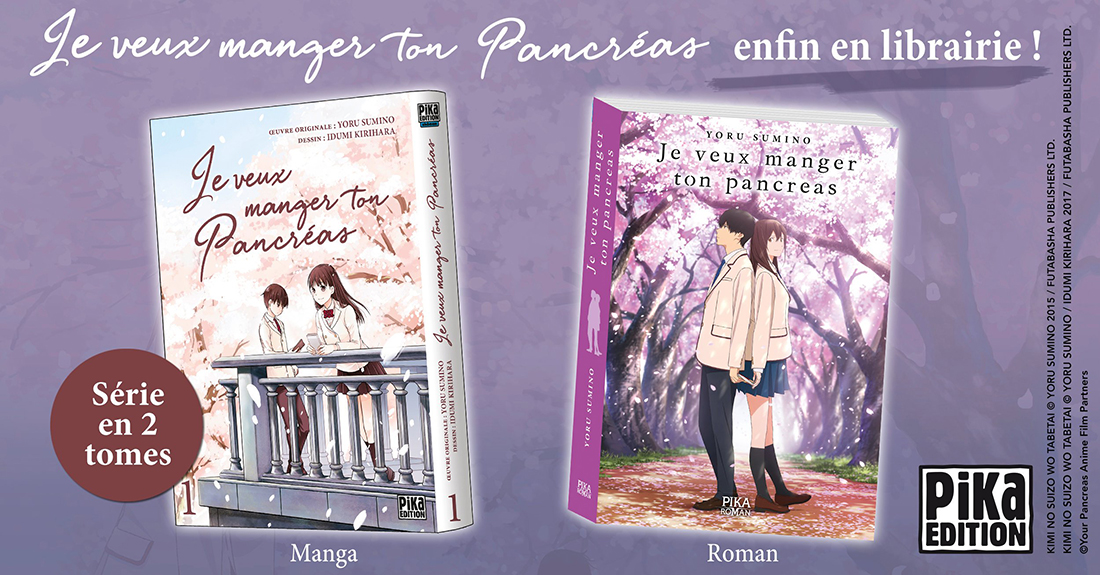 Amitié à temps limité ! Les éditions Pika ont annoncé la semaine dernière la parution de JE VEUX MANGER TON PANCRÉAS. Le 6 novembre prochain, découvrez l’histoire tendre de Yoru Sumino avec le roman original et son adaptation manga (dessinée par Izumi Kirihara). Récit à la fois drôle et émouvant, JE VEUX MANGER TON PANCRÉAS raconte l’étrange relation entre Haruki, lycéen associal et Sakura, sa camarade de classe malade qui compte bien profiter de ses derniers mois en sa compagnie. Votre coeur va faire des loopings !
