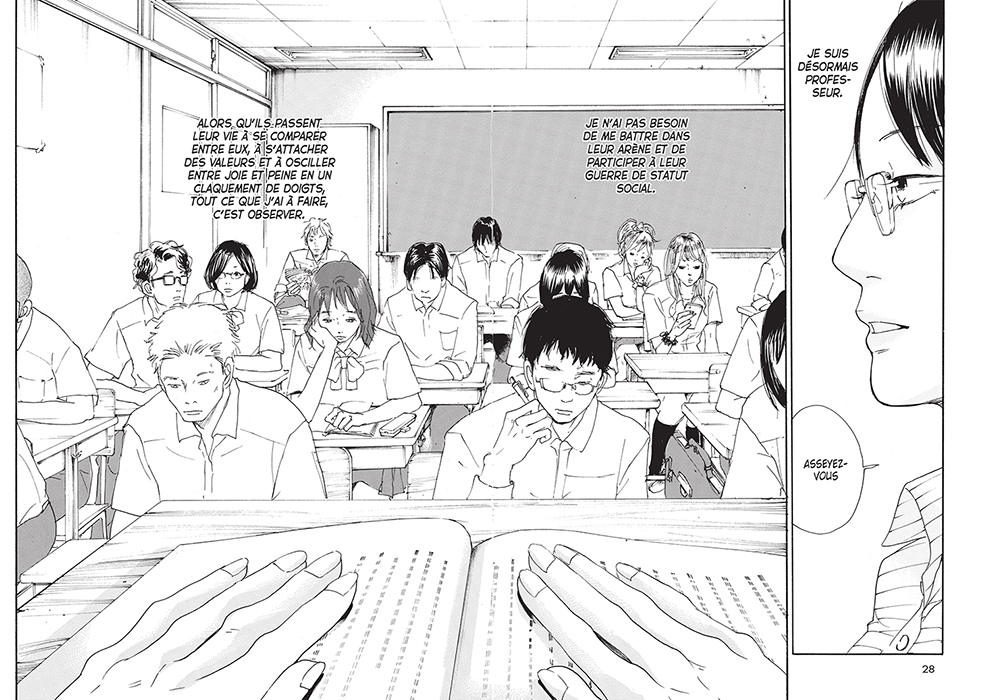 - Résumé officiel de EN PROIE AU SILENCE : Mizusu exerce ce que certains appellent le plus beau métier du monde… Mais entre le désintérêt de ses élèves et surtout la blessure qu’elle porte en elle, la jeune femme essaie tant bien que mal de mener son existence, la tête haute. Hélas, quand Minako, sa meilleure amie, lui annonce ses fiançailles avec Hayafuji, son petit ami de longue date, le quotidien de cette professeure vacille pour atteindre, peut-être, un point de non-retour. Pourra-t-elle trouver son équilibre dans une société si foncièrement inégale et injuste ?