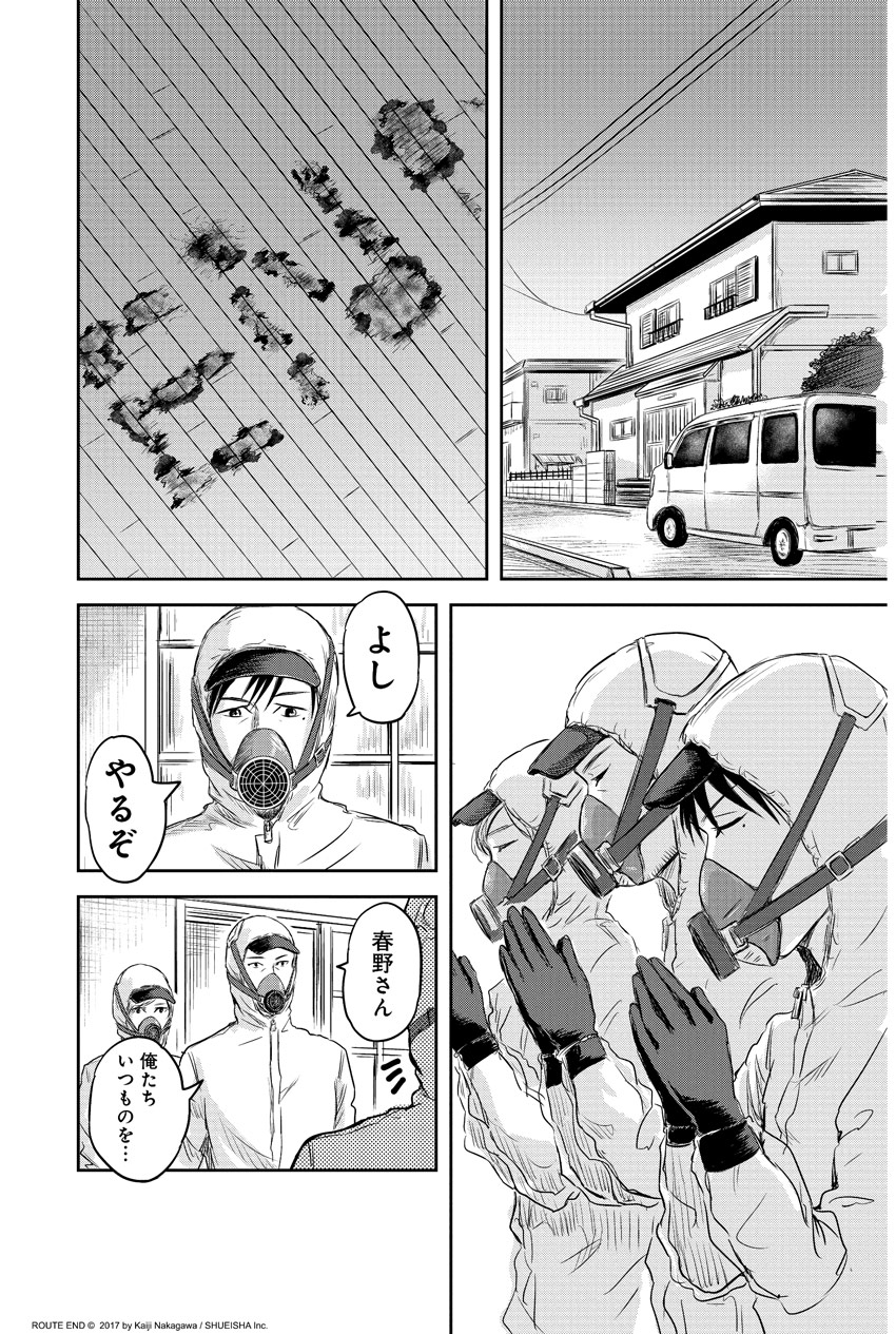 Son quotidien est bouleversé quand son quartier devient le théâtre de meurtres en série. Les victimes sont découpées en morceaux, puis alignées pour former un mot, le même à chaque fois : “END”. Taji est chargé du nettoyage de la dernière scène de crime en date. L’affaire prend une tournure personnelle pour lui lorsqu’il découvre que son patron, véritable figure paternelle, est peut-être impliqué dans ces morbides mises en scène…
