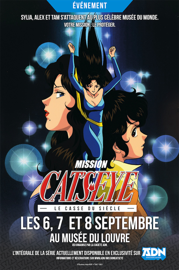 Le Louvre en péril le week-end prochain ! Pour célèbrer l’arrivée de l’intégrale de CAT’S EYE sur leur plateforme, en juillet dernier, ADN organise les 6, 7 et 8 septembre 2019 « Mission Cat’s Eye », un « immersive game » au musée du Louvre. On ne refuse rien aux sœurs Chamade. Attention, les places pour attraper les jolies voleuses sont limitées !