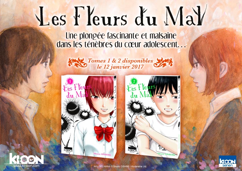 Les éditions Ki-oon annoncent la sortie en librairies du manga Les Fleurs du mal T.1 et T.2 de Shuzo Oshimi le 12 janvier 2017.