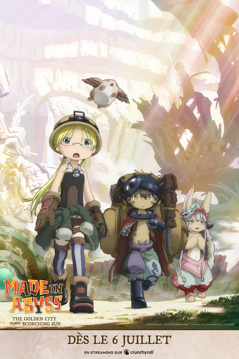 C’est parti pour l’exploration ! Cinq ans après la saison 1, MADE IN ABYSS est de retour avec la saison 2. Intitulée The Golden City of the Scorching-Sun, cette nouvelle saison fait partie du catalogue estival de Crunchyroll et a rejoint hier, 6 juillet, le catalogue de la plateforme avec une VOSTFR et une VF. Attention, la série est toujours pour public averti. L’Abysse ça se mérite !