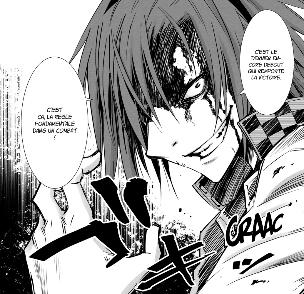 Pas de quoi bouder ce qui reste l’aspect le plus motivant de cette série. Le mangaka a bossé comme un malade son dessin, ça saute aux yeux. Il possède un style assez personnel, élancé, anguleux et détaillé, déjà complètement maîtrisé et qui ne laisse pas un détail au hasard. Vastes décors en piteux état, expressions faciales tordues et sardoniques, mouvements nerveux, chara-design de caractère, nouveaux personnages aux formes inhumaines… Ikeno a vraiment soigné le design et l’exécution de ses planches, à la fois propres, efficaces et inspirées.