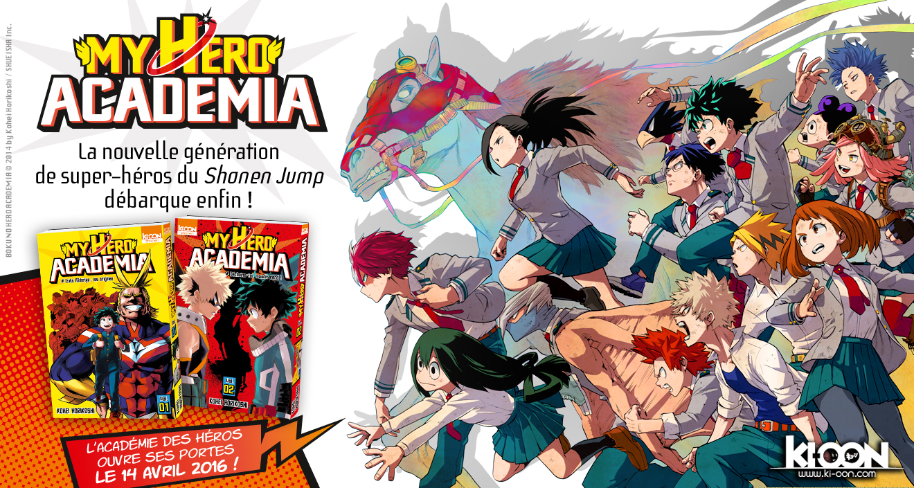 Les éditions Ki-oon annoncent la sortie de My Hero Academia de Kohei Horikoshi, le 14 avril 2016. Les tomes 1 et 2 sortirons le même jour.