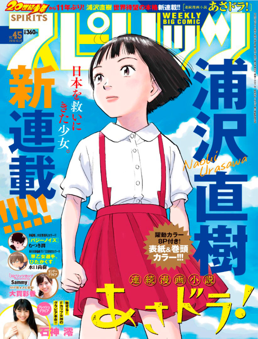 Naoki Urasawa (Monster, 20th Century Boys, Pluto…) débute sa nouvelle série intitulée Asadora! (Renzoku Manga Shōsetsu Asadora!) dans le 45ème numéro du magazine Weekly Big Comic Spirits ce samedi ! Le manga sera pour la première fois pour l’auteur, également diffusé numériquement. Le manga racontera la vie d’une femme depuis la fin de la Seconde Guerre mondiale jusqu’à nos jours. Une vie bien remplie…