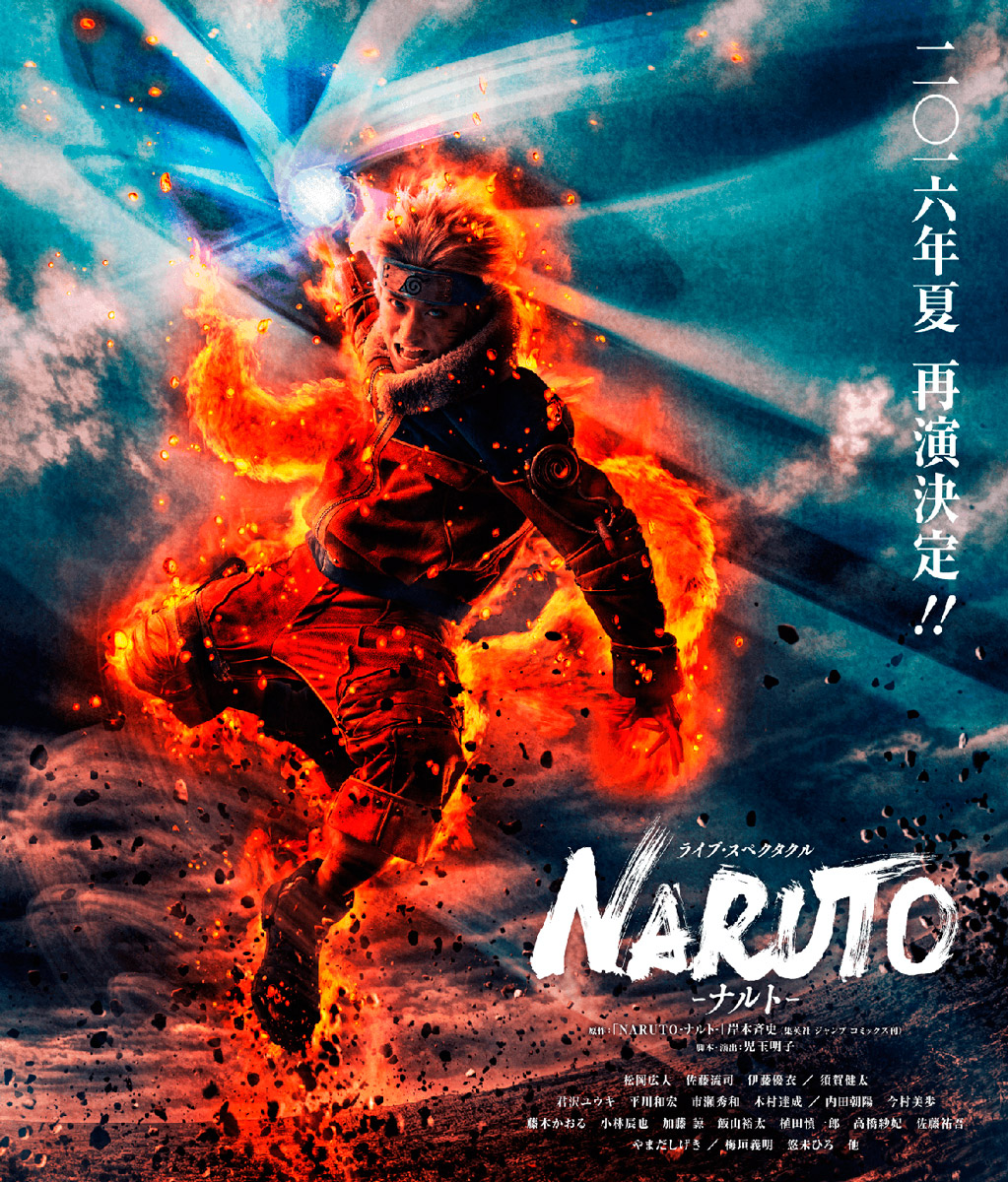 L’adaptation en musical de Naruto dévoile son affiche définitive. Le spectacle sera visible du 30 juillet au 7 aout 2016 à Osaka au Umeda Arts Theater Theater et à Tokyo au AiiA 2.5 Theater du 8 au 28 août 2016.