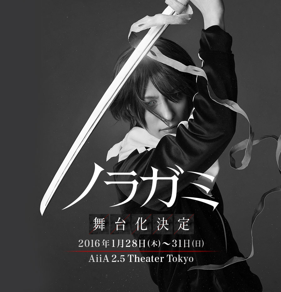 Noragami, le manga de Adachitoka, sera adapté en pièce de théâtre au Japon avec Hiroki Suzuki dans le rôle de Yato. Naohiro Ise sera à la mise en scène d’après son propre scénario. La pièce sera jouée pendant 8 représentations entre le 28 et le 31 janvier 2016 au AiiA 2.5 Theater Tokyo.