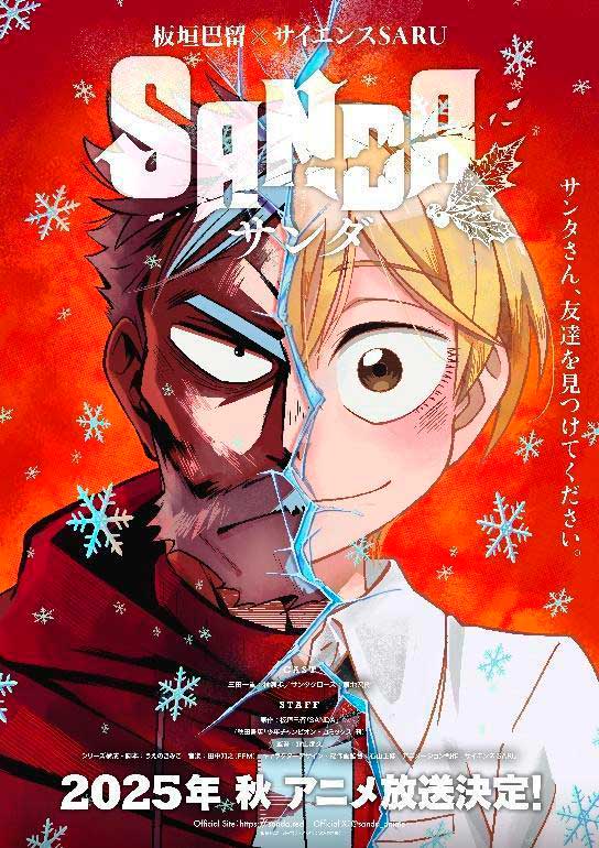 SANDA est un manga de Paru Itagaki, créateur de BEASTARS, qui a remporté le Grand Prix du Manga Taisho 2018 ainsi que trois autres prix majeurs du manga. Situé dans un futur proche, où des mesures extrêmes sont prises pour protéger les enfants face à un déclin démographique drastique, le récit met en scène un héros atypique, le Père Noël, dans un récit bourré d’action. L’adaptation animée est produite par Science SARU, le studio à l’origine de DAN DA DAN et de Scott Pilgrim Takes Off. Sa sortie au Japon est prévue le 3 octobre 2025, et une première mondiale est également confirmée à l’Anime Expo.