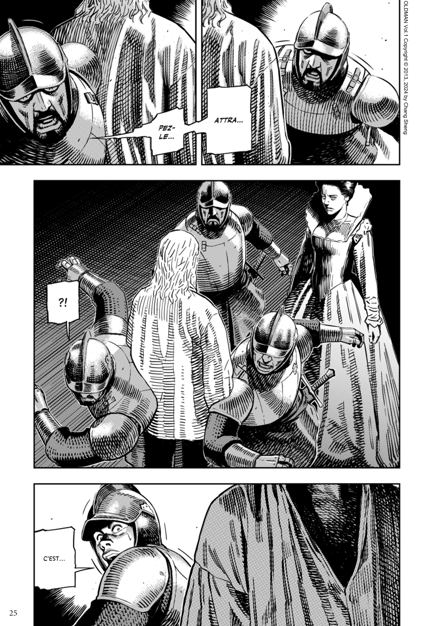 L’autre grand plaisir procuré par cette histoire est son héros, qui maîtrise l’art de l’illusion et s’avère capable de déstabiliser des adversaires lourdement armés, avec un simple paquet de cartes. Chang Sheng s’est d’ailleurs inspiré du film The Prestige de Christopher Nolan, sorti dix ans avant Oldman. On apprécie aussi son dessin réaliste et ses nuances, allant du détaillé (les armures, les décors médiévaux) à des aspects plus souples, plus jetés sur le papier, pour créer des nuances et injecter du dynamisme.