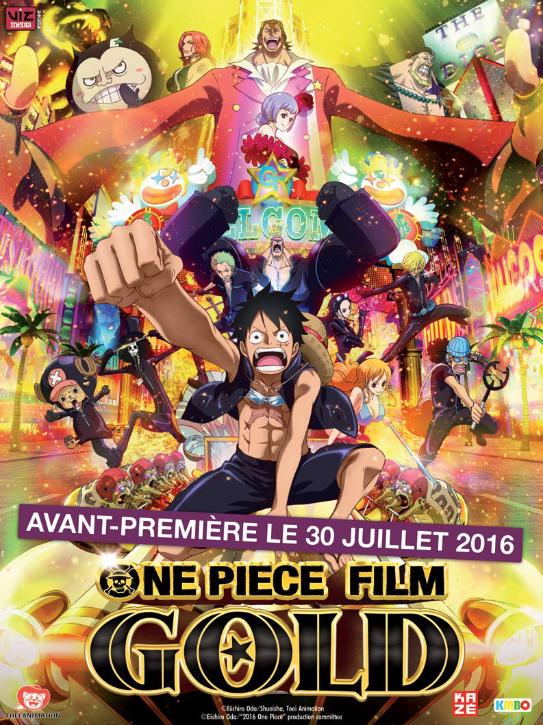 Le film One Piece Gold sortira sur les écrans en France le samedi 30 juillet 2016 dans une quarantaine de salles en avant première.