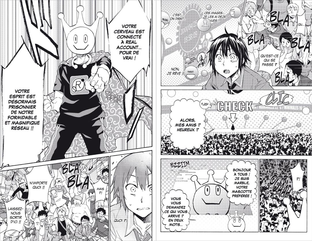 Au-delà d’Internet, il y a Real Account, aka ReA. Le Japon entier ne jure plus que par ce réseau social qui rythme l’existence de chaque habitant de l’archipel. Ataru Kashiwagi n’échappe pas à la règle, et ReA lui a permis de s’inventer une vie en ligne sans rapport avec la réalité. Une double identité qu’il gère sans problème jusqu’à ce qu’il se retrouve pris en otage par le réseau. Il n’est pas le seul : 10 000 personnes sont ainsi prisonnières de ReA et de sa mascotte. Et cette dernière a mis au point un jeu qui laisse peu de chances de survie aux participants.