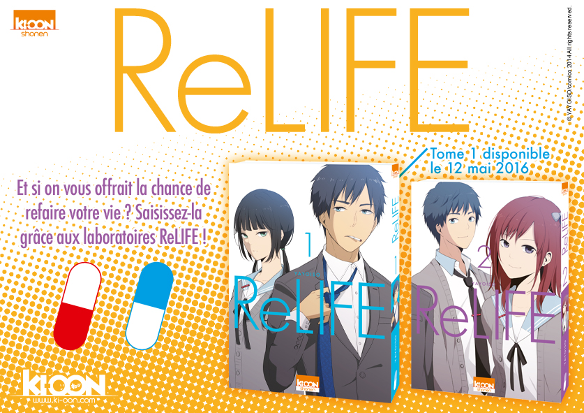 Les éditions Ki-oon annonce l’arrivée dans leur catalogue d’un titre au parcours atypique, ReLIFE, un manga entièrement en couleurs ! Sortie le 12 mai 2016.