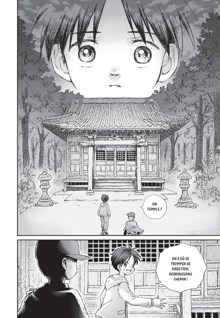 JIZO, c’est un manga un peu à part, un conte mélancolique et poétique, tout en ombres et lumières. Il raconte l’histoire d’un petit garçon, Aki, perdu et ignorant comment rentrer chez lui. Il croise alors la route d’un autre garçon, Jizo, qui lui propose son aide. Aki peut-il lui faire confiance ? Et qui est cette vieille femme effrayante qui semble poursuivre le petit garçon ?