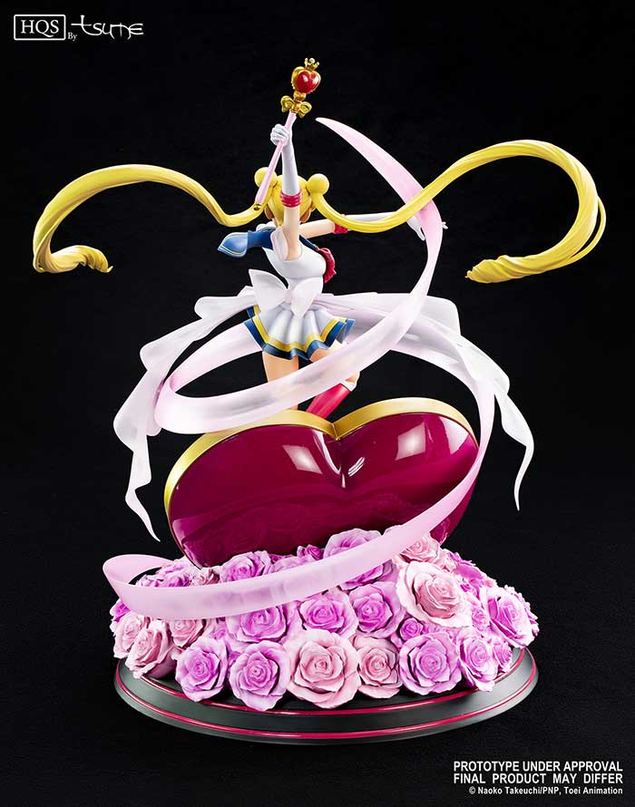 Le fabriquant de figurines de collection TSUME vient de dévoiler sa dernière œuvre : SailorMoon HQS. Usagi est représentée en tenue de combat, juste après sa transformation, tenant fièrement la baguette du cœur lunaire (Spiral Heart Moon Rod) dans sa main. On peut reconnaître derrière elle, posé au milieu d’un champ de roses, la broche du cœur lunaire (Crisis Moon Compact). Tirée à 2 500 pièces maximum, elle est déjà disponible en précommande pour 499€ (TTC) !