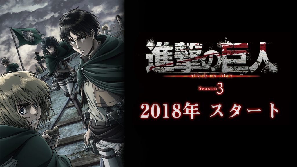 La saison 3 de l’Attaque des titans est annoncée pour juillet 2018 après la sortie le 13 janvier 2018 d’un long-métrage compilant la saison 2 sur grands écrans.