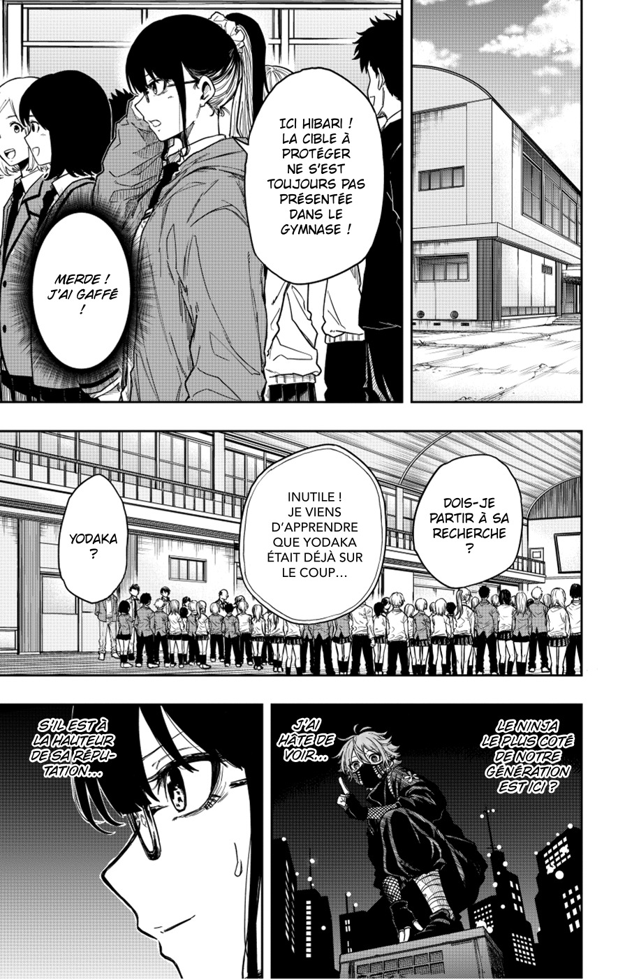 Dans cette série lancée en 2024, les ninjas sont aux ordres de la sécurité publique, donc du côté des gentils. Yodaka ne paye pas de mine avec son petit gabarit perdu dans un gilet XL, par contre ce jeune prodige est le meilleur des ninjas en activité. Sa prochaine mission : infiltrer un lycée pour assurer la protection d’Aoi, une adolescente de bonne famille (aucun doute à ce sujet, vu qu’elle arrive le matin en berline noire avec chauffeur).