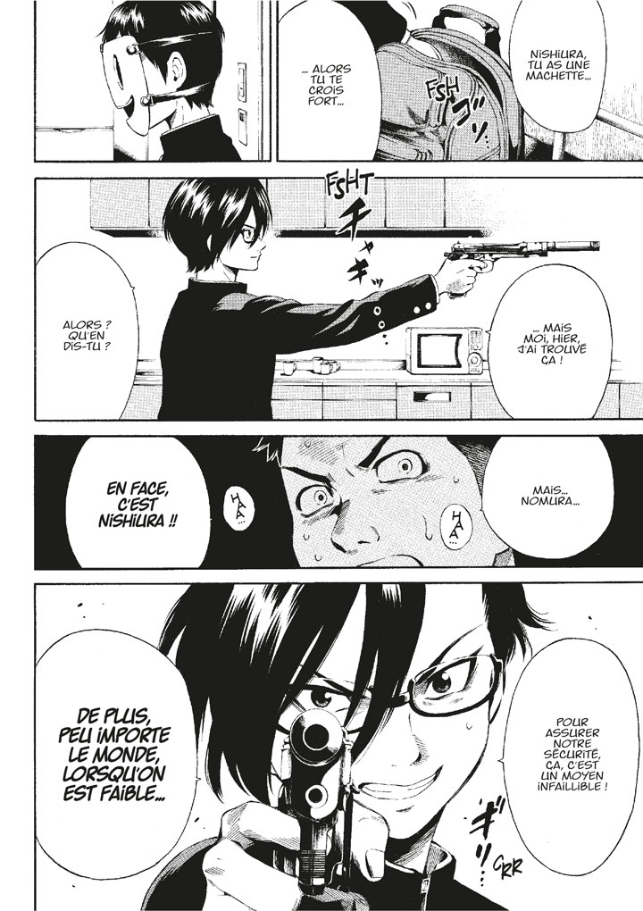 A – Oui. Mais pas seulement des survival games. En tant que mangaka, j’ai toujours été fasciné par toutes les « tensions pour échapper à la mort ».