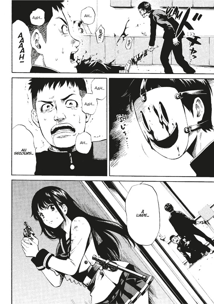 A – « Lycéennes / gratte-ciel / tueurs ». C’est le slogan que mon éditeur a trouvé, et je pense qu’il résume parfaitement tous les aspects de ce manga.