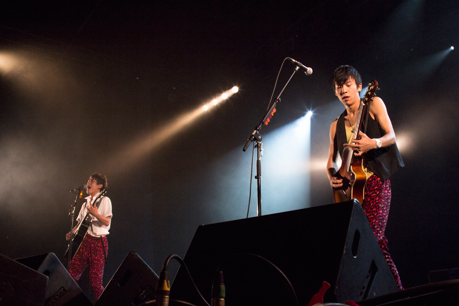 Nous composons tous les deux des musiques et nous écrivons tous les deux des textes. Quand Jiro a des idées, il me les amène lors de nos sessions, ou parfois c’est moi qui lui amène des idées… Ou bien encore, nous composons des chansons chacun de notre côté et nous les terminons ensemble lors de nos répétitions. De toute façon, que ce soit sur disque ou sur scène, nous ne sommes toujours que tous les deux !