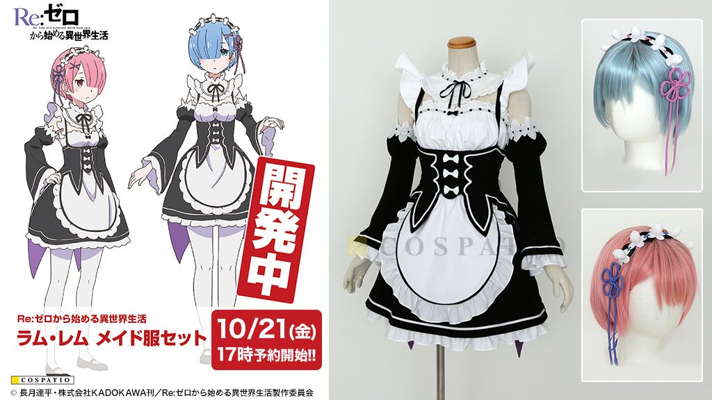 La société Cospa au Japon, sous son label de costumes pour cosplay, Cospatio, produisent pour décembre (pendant le Comiket) des tenues de Rem et Ran de Re:Zero (les autres persos sont aussi disponibles) pour la somme de 68 000 yens (600€ !) sans la taxe (!) mais avec les chaussures, perruque, chaussettes….