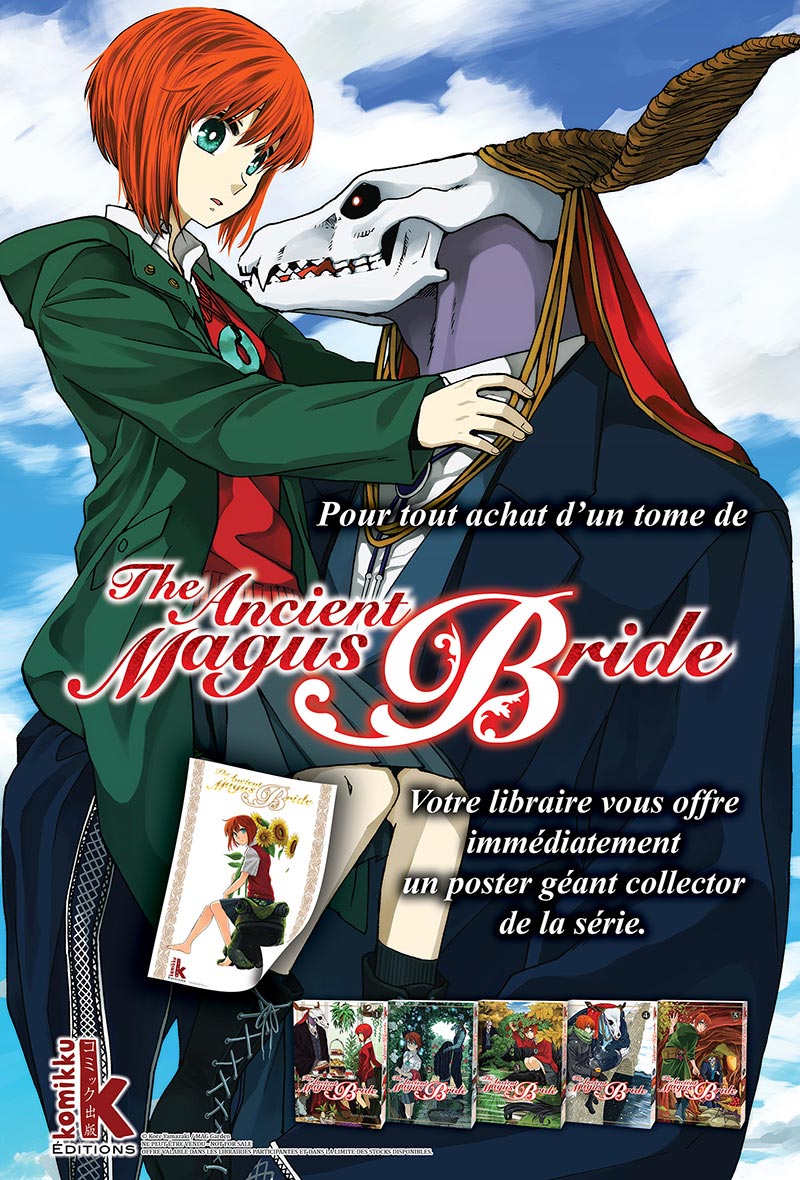 Les éditions Komikku annoncent une opération spéciale pour fêter la sortie du tome 5 du manga The Ancient Magus Bride de Kore Yamasaki dès le 22 septembre 2016. Ainsi, pour tout achat d’un tome de la série The Ancient Magus Bride, votre libraire vous offrira un poster géant (90 x 61 cm).
