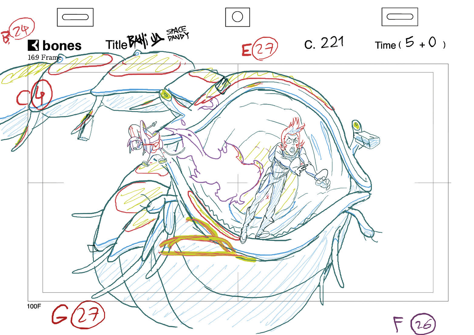 Je suis arrivé au Japon fin 2003 pour travailler sur OBAN STAR RACER. J’ai travaillé deux ans et demi sur cette coproduction franco-japonaise aux studios HAL Film Maker. Savin Yeatman-Eiffel s’occupait de toute l’écriture et coréalisait, en supervisant avec les collaborateurs japonais. Je coréalisais, je m’occupais des personnages et supervisais l’animation 3D en France, et Stan (Stanislas Brunet – ndr) s’occupait de tout le mecha-design et des décors. Nous faisions presque tout à trois, sauf le story-board : on le confiait uniquement aux Japonais.