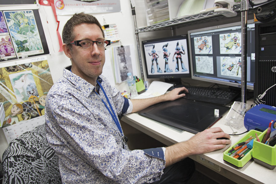 Impossible de rater Thomas Romain à la station d’Asagaya où nous avons fixé notre rendez-vous. Dépassant le mètre quatre-ving-dix, le designer des vaisseaux de SPACE DANDY nous a fait entrer en douce chez Satelight pour nous présenter son bureau, et nous parler des joies et déboires des professionnels de l’animation.
