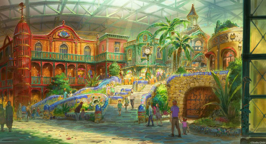 L’entrée du parc, sera crée d’après l’architecture du Château ambulant et une réplique du magasin d’antiquité du film Si tu tends l’oreille’s sera construite.