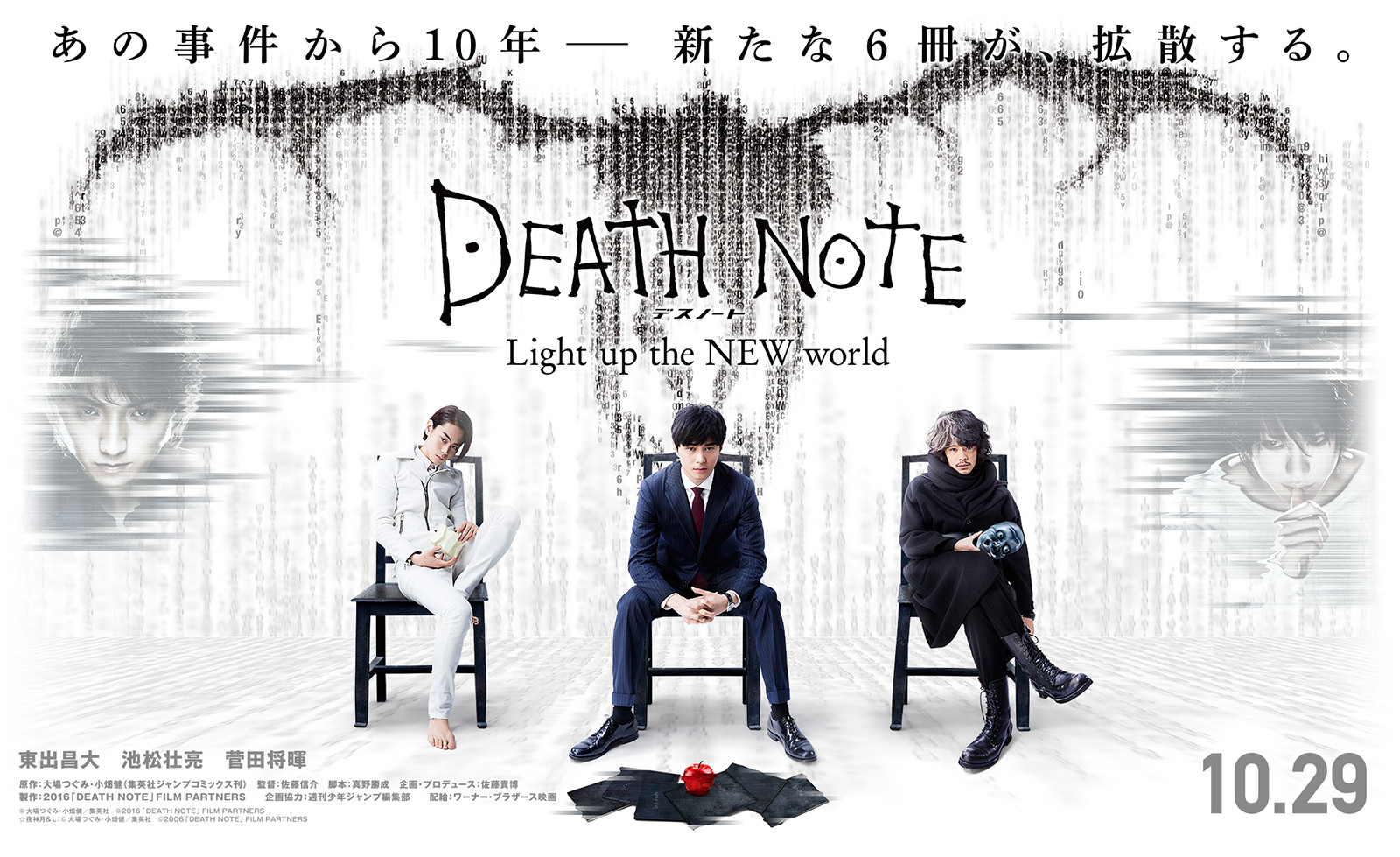 C’est finalement l’arrivée fracassante du film Death Note Light up the NEW world, la suite très attendue des 2 premiers long métrages de 2006 qui ravit la première place du box-office japonais à Your Name de Makoto Shinkai. Après 9 semaines passé numéro 1 quand même ! Le film Death Note réalisé par Shinsuke Sato (GANTZ, Library Wars) est projeté sur 341 écrans au Japon depuis le 29 octobre. Avec ses 342 309 entrées il est déjà à 60% du score du dernier film de la franchise Death Note The Last Name. Your Name reste néanmoins classé second !